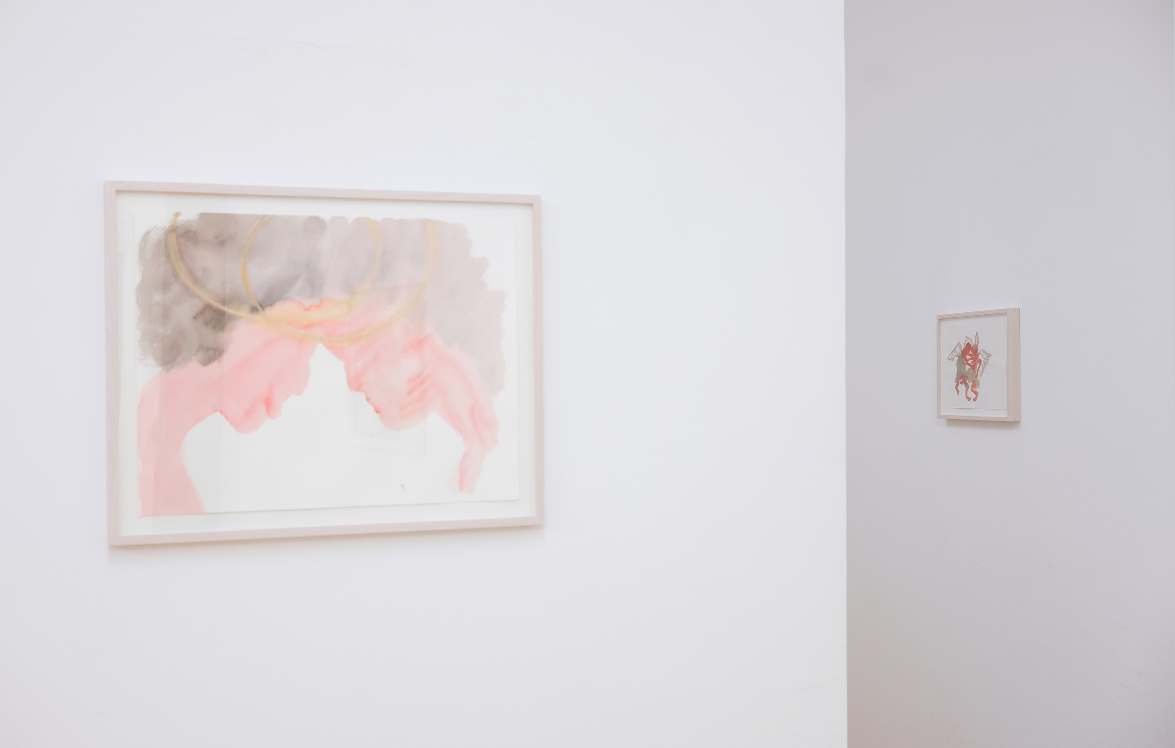 This text is not essential for understanding the exhibition. However, as the motif of angels can be perceived controversially, I would like to explain where I got it from. Angels are widespread motifs in Christian art and the societies characterised by it. I don't want to use angels to delimit a cultural area or an addressee. It is rather the other way round, that they are the symbols that I use to express existential topics that could also be described in non-religious terms. When I paint watercolours, I don't intend to depict content. For me, watercolours are tools for exploring content or processing situations. I am not familiar with them and have a lot of questions.