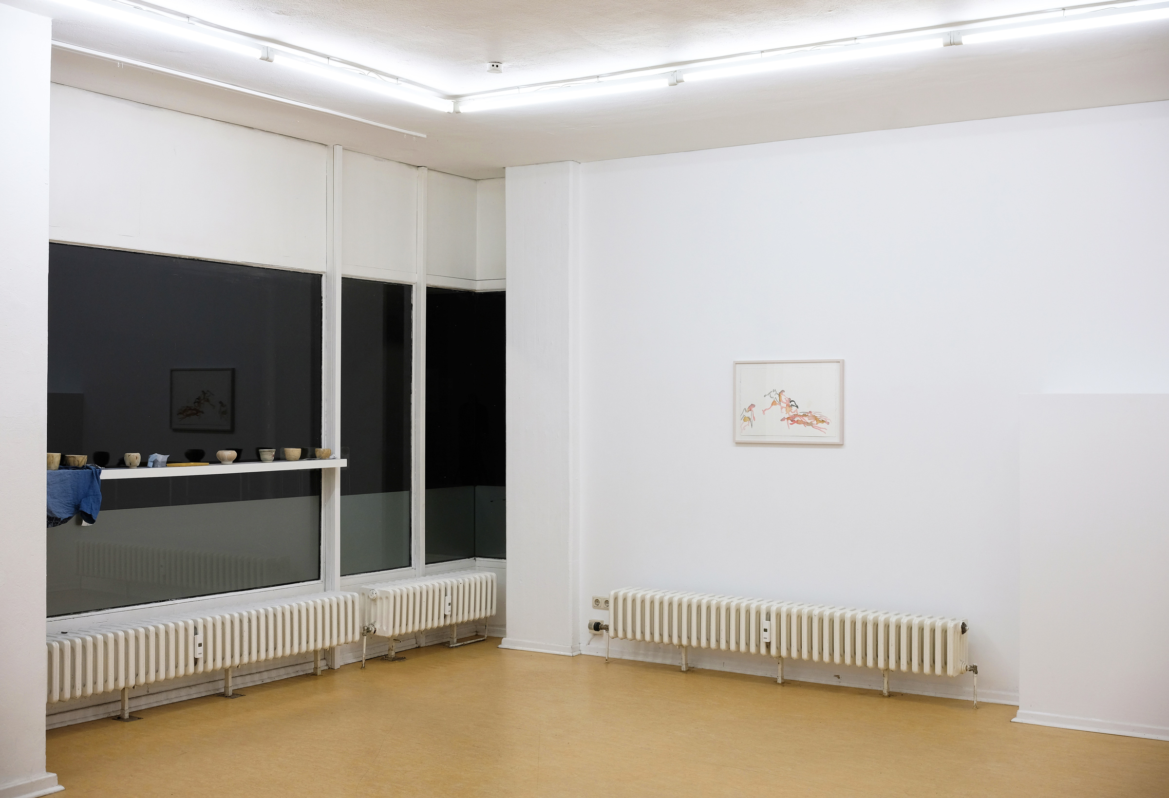 Die Keramikbecher sind eine fortschreitende Produktion von Einzelstücken, die für den Gebrauch bestimmt sind (wenn man möchte). Gleichzeitig gehe ich bei der Gestaltung des Gefäßes und seiner Bemalung genauso vor, wie ich es bei einem Aquarell tue. Der Kontext ist aber ein anderer. Die Becher beziehen sich auf Traditionen der Gebrauchskeramik. Das Gefäß zum Trinken oder Essen, zum Bevorraten von Speisen ist nicht nur Teil der Kunstgeschichte – der Kunstgeschichten aus Kulturen aller Kontinente – sondern auch der Anthropologie. Es ist eine Motivation für mich, in dieser alten Kulturtechnik zu arbeiten, die seit ihrem Bestehen Rückstände in Form von Scherben in der Welt hinterlässt.