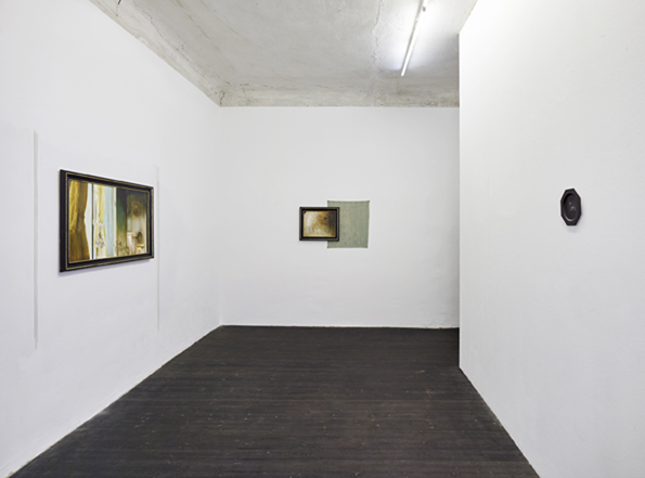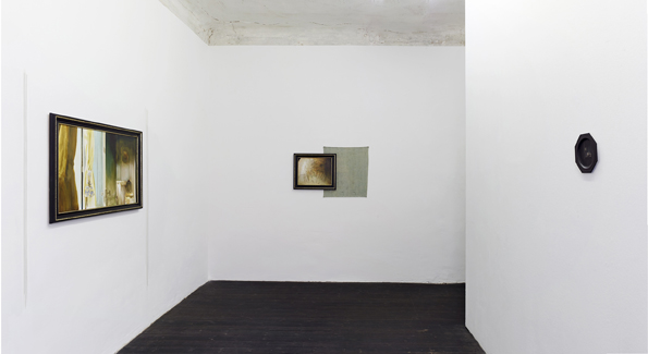 We are pleased to present the second solo exhibition with new works by Daniel Laufer. In the first room we encounter a film setting consisting of oil paintings, a sculpture, fabrics, and a wall painting. In his new film, Train of Thought (2015), Laufer edits images of the setting with the special technique of “Match-cuts” between documentary and staged scenes, thus creating a temporally and spatially permeable narrative structure that retraces a circular, inner movement returning to its point of departure.